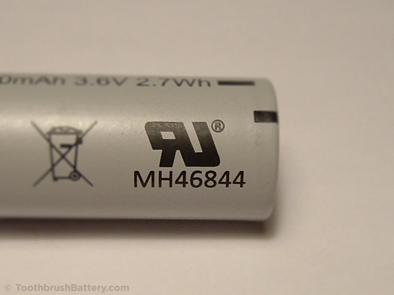 The Braun OE and Sanyo batteries originally fitted to these toothbrushes have been tested for safety by Underwriters Laboratories (UL). UL are an international technical testing establishment, and these batteries have received their Recognized Component Mark for components displayed as a “reversed UR” symbol on the battery as in the photo below. Lithium-ion batteries can be more dangerous than other chemistries of battery if not manufactured very carefully, especially during charging/discharging. It is important to only use Lithium-ion batteries that have been certified as safe in your toothbrush.